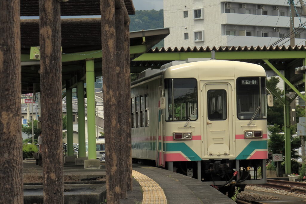甘木鉄道はもともとは国鉄甘木線だった路線。甘木駅も西鉄の駅と違い、駅舎も立派で駅前にロータリーもあり、かつてはそれなりに利用があった駅なんだなということを彷彿とさせられます。