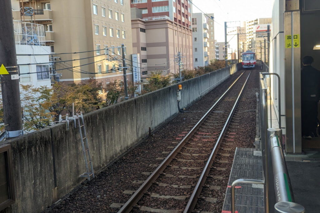 新浜松駅から途中の自動車学校前駅までは浜松の中心部と高架で抜ける区間。北側はどちらかというと田園風景が広がる区間となっています。