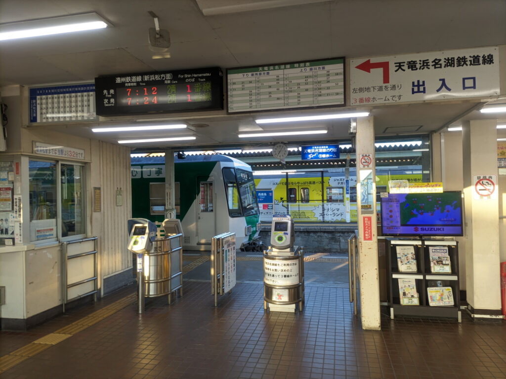 全線単線ではありますが、運転間隔は12分。地方鉄道としてはかなり「頻繁」に運転されている路線です。実際、乗車したのは日曜日の早朝でしたが、上り・下りともそれなりに乗車があり、それだけのニーズはありそうでした。浜松市の北側の地域と、浜松駅を結ぶ主要な交通機関として機能しているなぁ、と感じました。