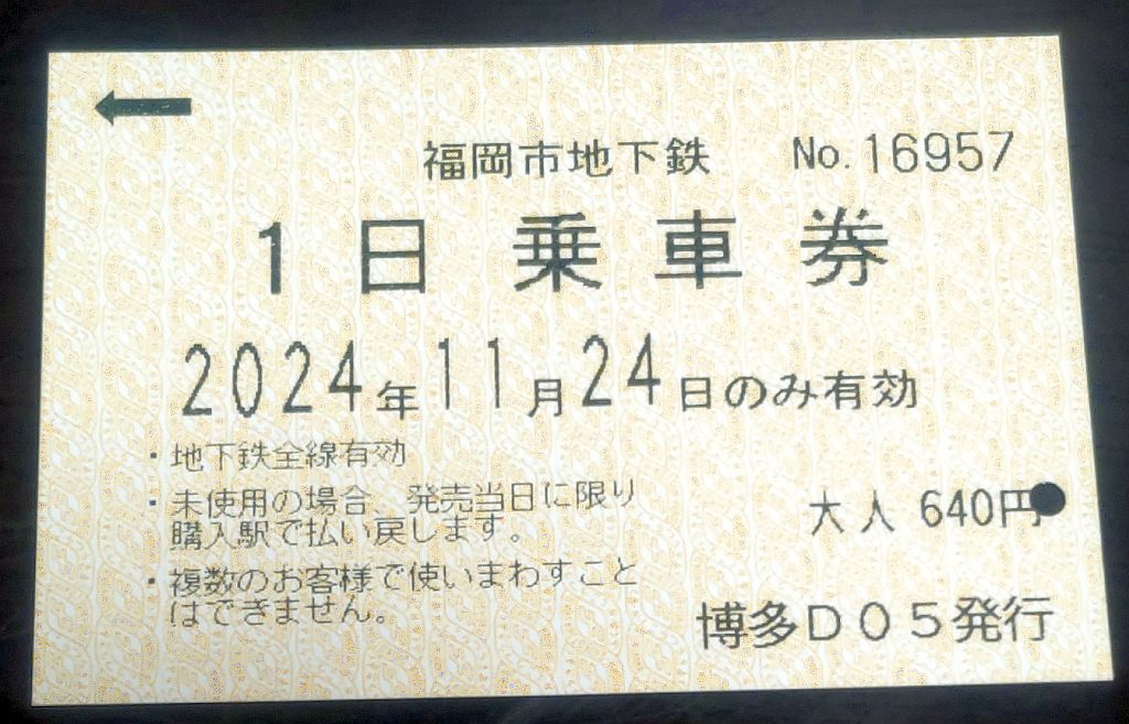 七隈線を博多から橋本まで全線乗車すると340円なので、単純往復でも元がとれる計算です。