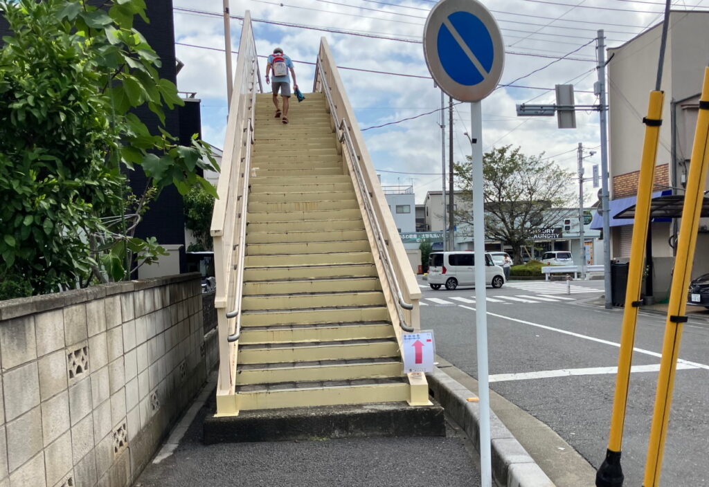 芝スポーツセンターからは比較的通行量の多い産業道路を川口駅方向へ。この区間は交差点を歩道橋で越える区間が何か所かあります。昨年はこの歩道橋あたりですでにいっぱいいっぱいになっていたのですが、今年は順調です。