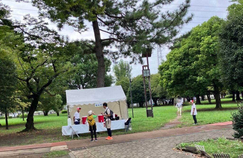 三ツ和公園には11:08に到着。ここで麦茶をサービスしていただけるので、ありがたく給水補給させてもらいます。