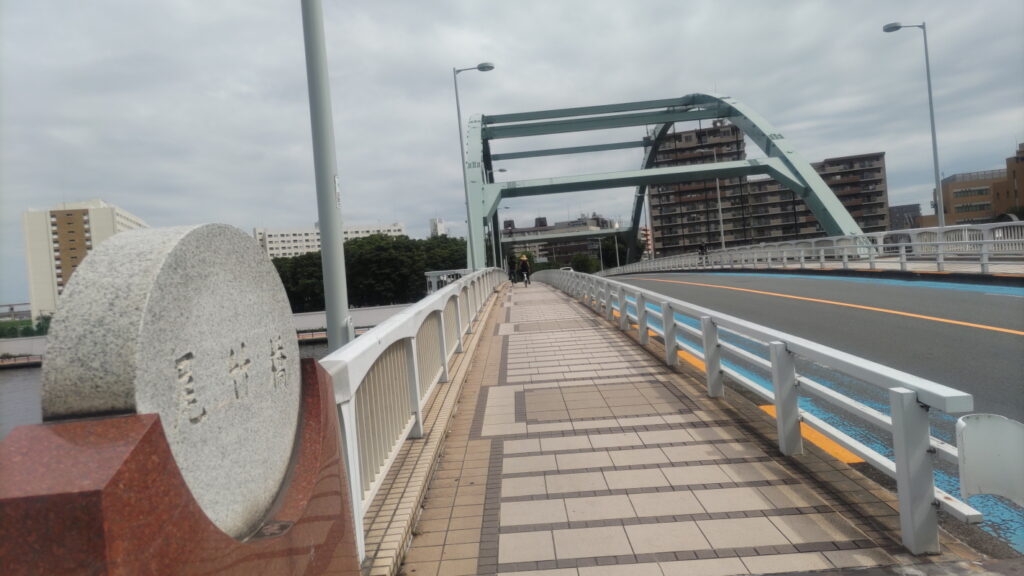 スタートが岩淵水門の中央部分でしたので、築地大橋の海側歩道の中央部分をゴールとしました。