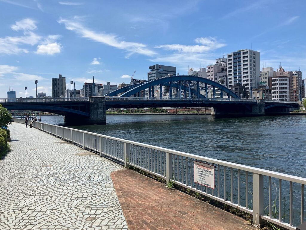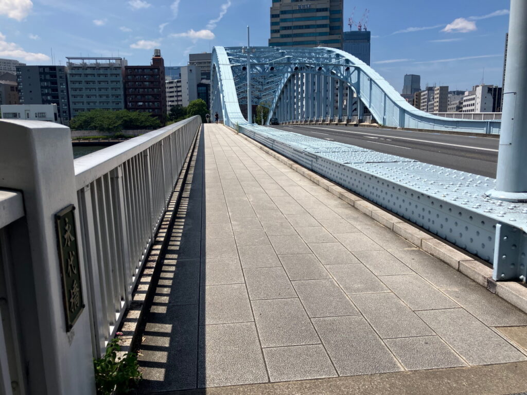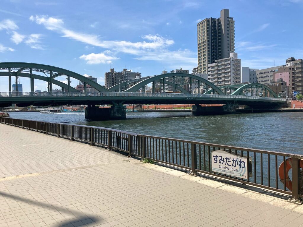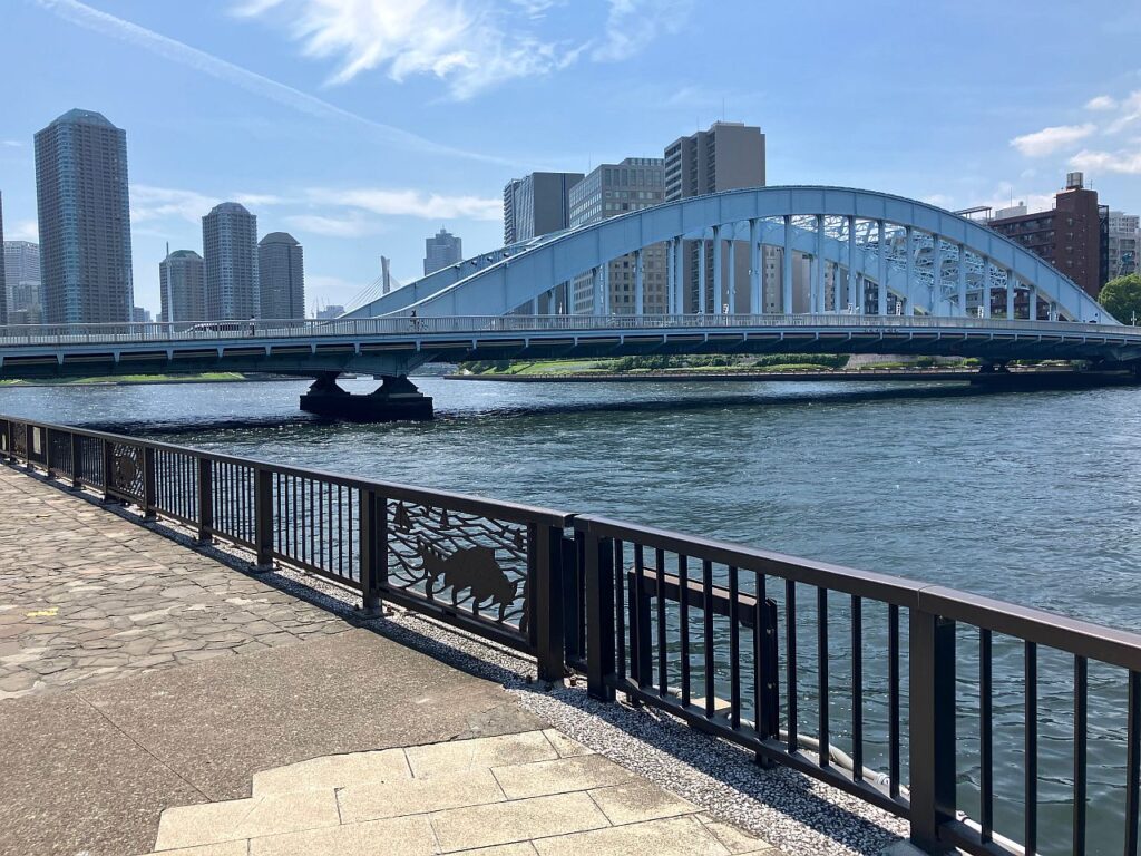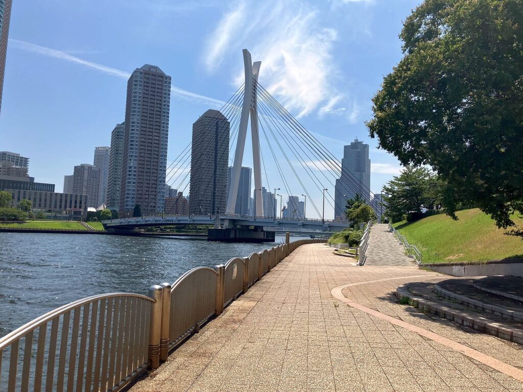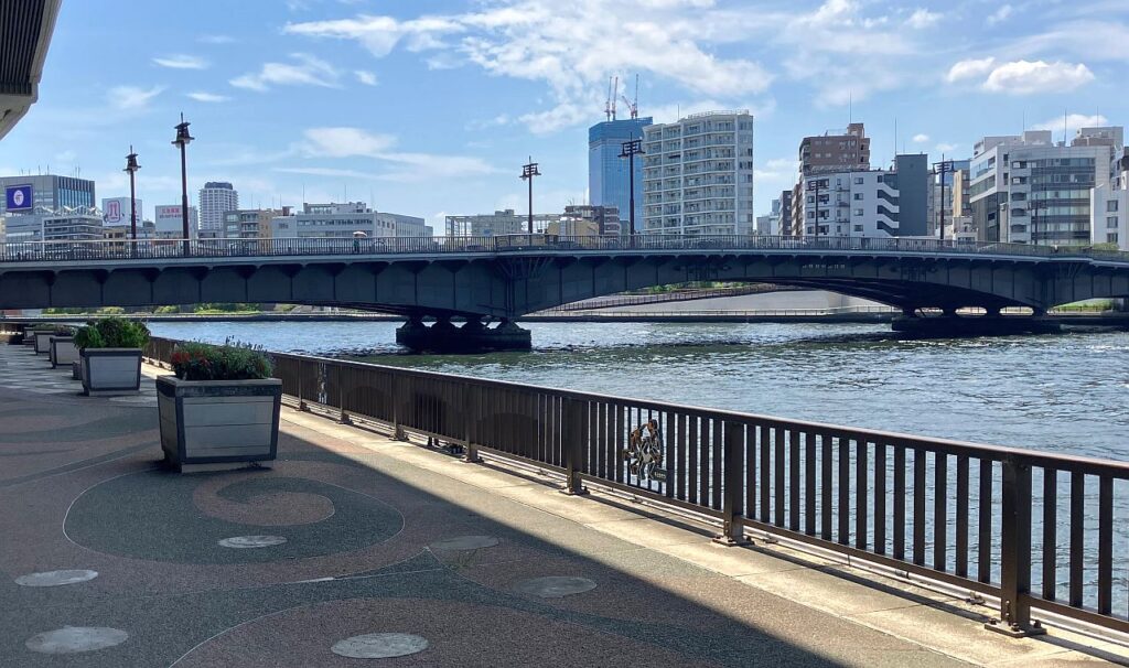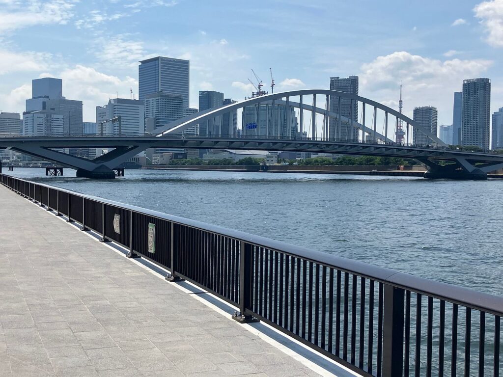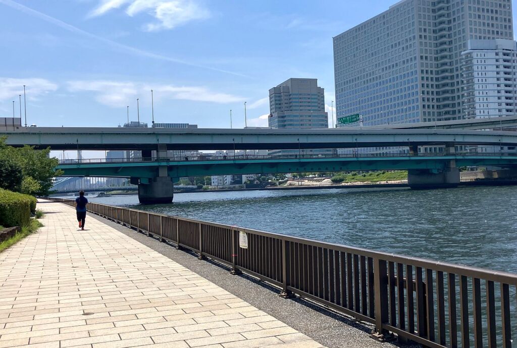 ここから永代橋までは右岸側にもテラスが整備されているので、右岸を歩いてもよいのですが、以下の3つの理由から左岸側の方がおすすめです。